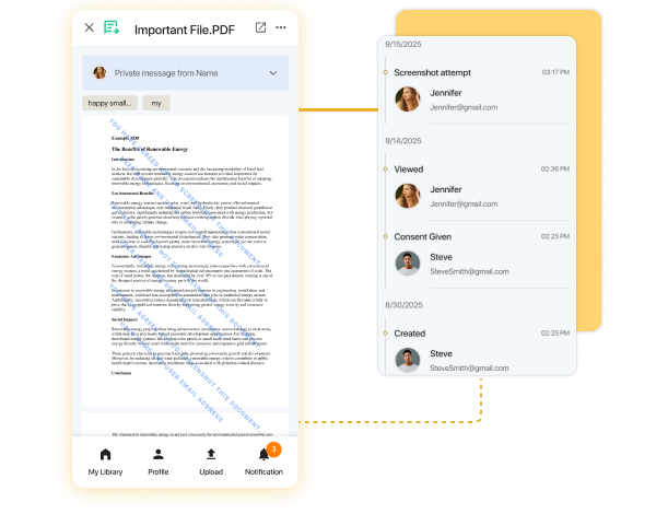 Add a watermark to your document and block unauthorized screenshots and re-shares after download